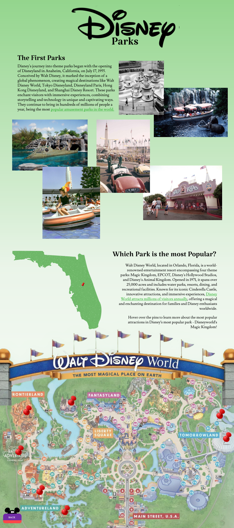 After creating a general moodboard, I continued by creating rough sketches of what I wanted each page of my website to look like. This would make it easier for me when I started making my final versions. I knew I wanted a page explaining the beginning of the Disney company, a page explaining the growth of Disney Animation, a timeline of Disney movies, a page explaining the growth of Disney Parks, and a map of Disney World rides.