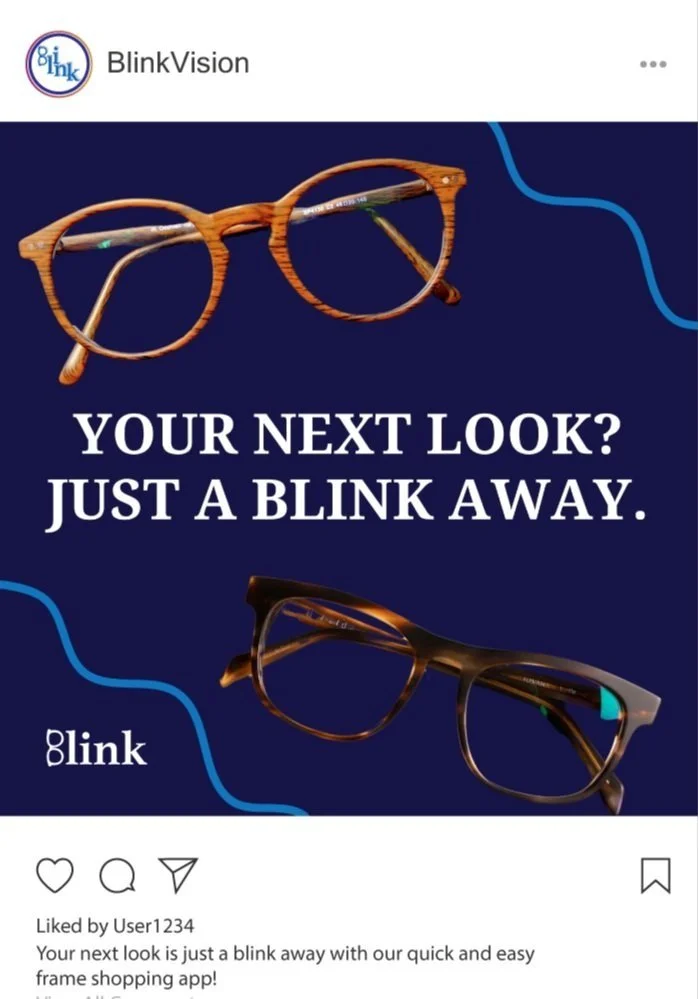 For this project, I was tasked with creating my own glasses company. So, I created Blink. A modern glasses company that allows you to shop for glasses online and it ships the glasses to your home. No in store shopping needed!